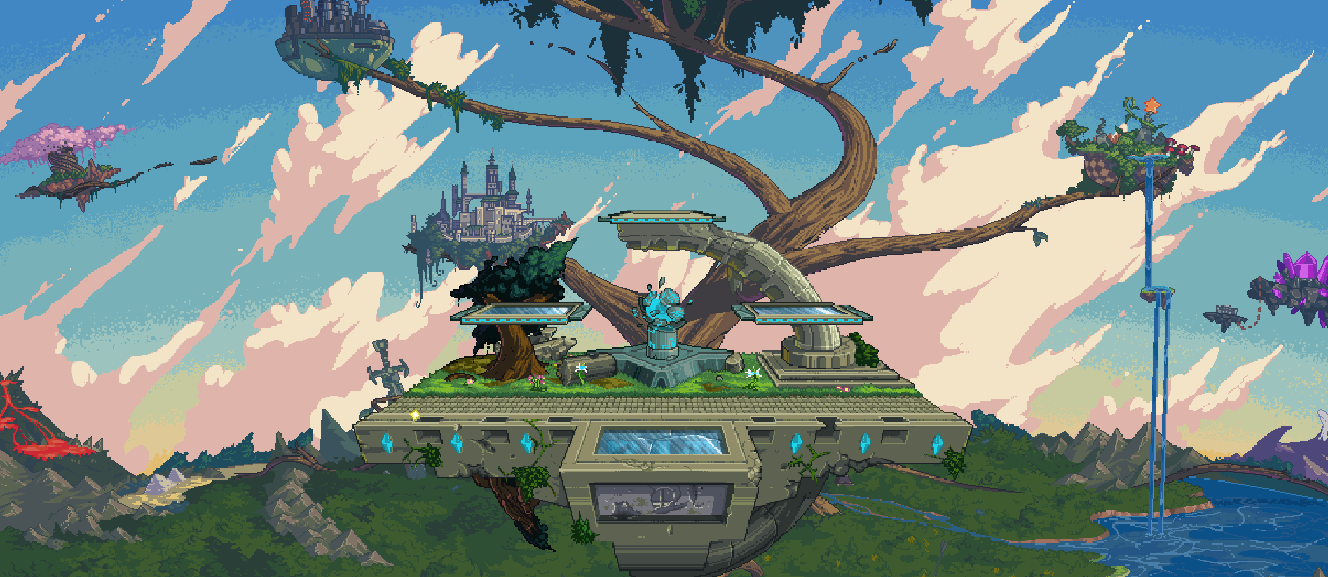 The Tree of Smash rests behind Battlefield on the vast expanse below. This gentle giant has branches that reach across the endless universe we live in. As all trees do, it absorbs and creates; it absorbs the stories of all these characters and their worlds and produces the creative energy neccesary for fighters to meet and fight in Super Smash Flash 2. Across this plateau countless stories have likely taken place, but now is the time to bring all these characters and match-ups to Battlefield and write your own!